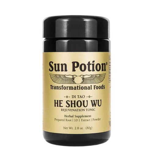 He Shou Wu is a traditional Taoist Herb & Jing Tonic that has a history of use as a longevity, anti-aging, blood-building, beauty, & rejuvenation food. Regular consumption of this herb may help to tonify and nourish the blood, hair, skin, nervous system, sexual center, shen (Spirit), and Jing (primary essence/life force). It may also help to improve stamina, and increase antioxidant activity.