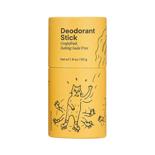 Meow Meow Tweet's Grapefruit Baking Soda-Free stick is downright fresh! Baking soda: love it, hate it, in a part-time relationship with it? For those less enthused fans, this stick's for you! This tried and true dream team of potent plant oils and mineral powders with a sweet citrusy scent in a convenient push-up paper tube. No more fingers and B.S. woes! Not only does it work, it's biodegradable. We're talking effective and zero-waste now that's the cat's pajamas!