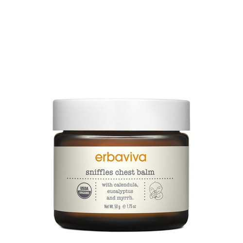 Sniffles Organic Chest Balm is expertly formulated to ease baby through the difficult cough and cold season. A potent, yet gentle blend of eucalyptus, tea tree and myrrh essential oils boost the immune system and lend powerful antiviral and antibacterial properties. Cypress and helichrysum also act as antivirals while providing healing comfort. To naturally soothe irritated spirits a mixture of calendula, lavender and chamomile were added to the blend. Apply to baby's chest, back, neck and behind the ears to relax and soothe.