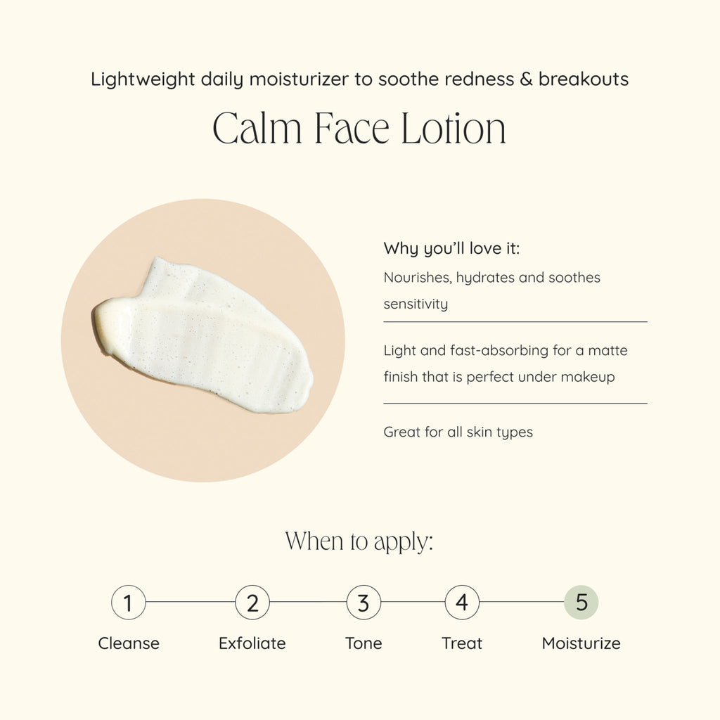 Keep skin calm with this lightweight face lotion. A tranquil duo of chamomile and lavender waters soothes and softens skin, while nourishing plant oilsincluding apricot kernel, jojoba, and sunflowerplump and hydrate. Perfect on its own or as a smoothing primer before makeup.