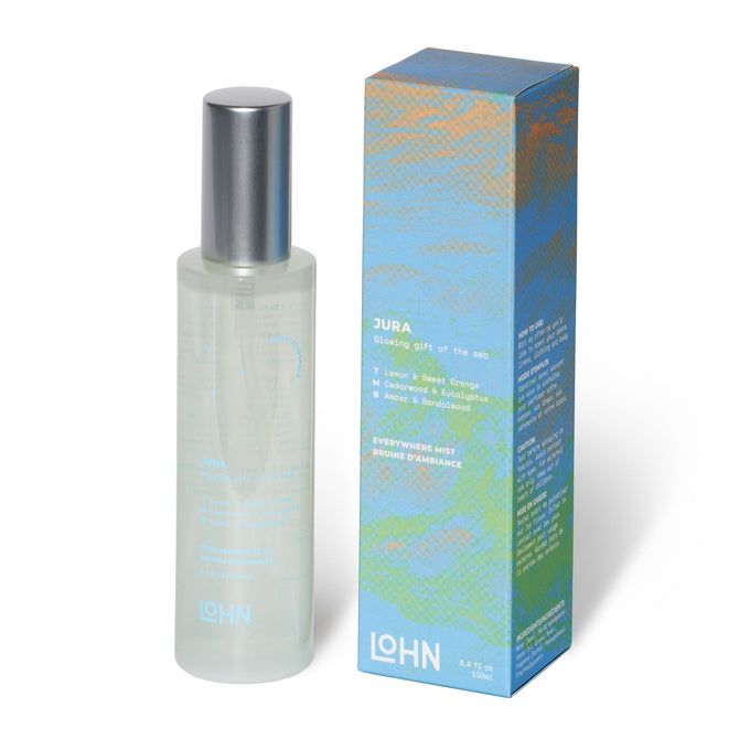 LOHN’s Everywhere Mist can be used to freshen up your space, linens, clothing and body. JURA smells like a morning walk on a rainy coastline with notes of refreshing lemon and bergamot, cooling eucalyptus, rich sandalwood and cedarwood, with a touch of amber. Light & citrusy. The Everywhere Mist truly lives up to its name, and comes in a travel-friendly size so you can bring it along on your next adventure. Made in Toronto by women in STEM.