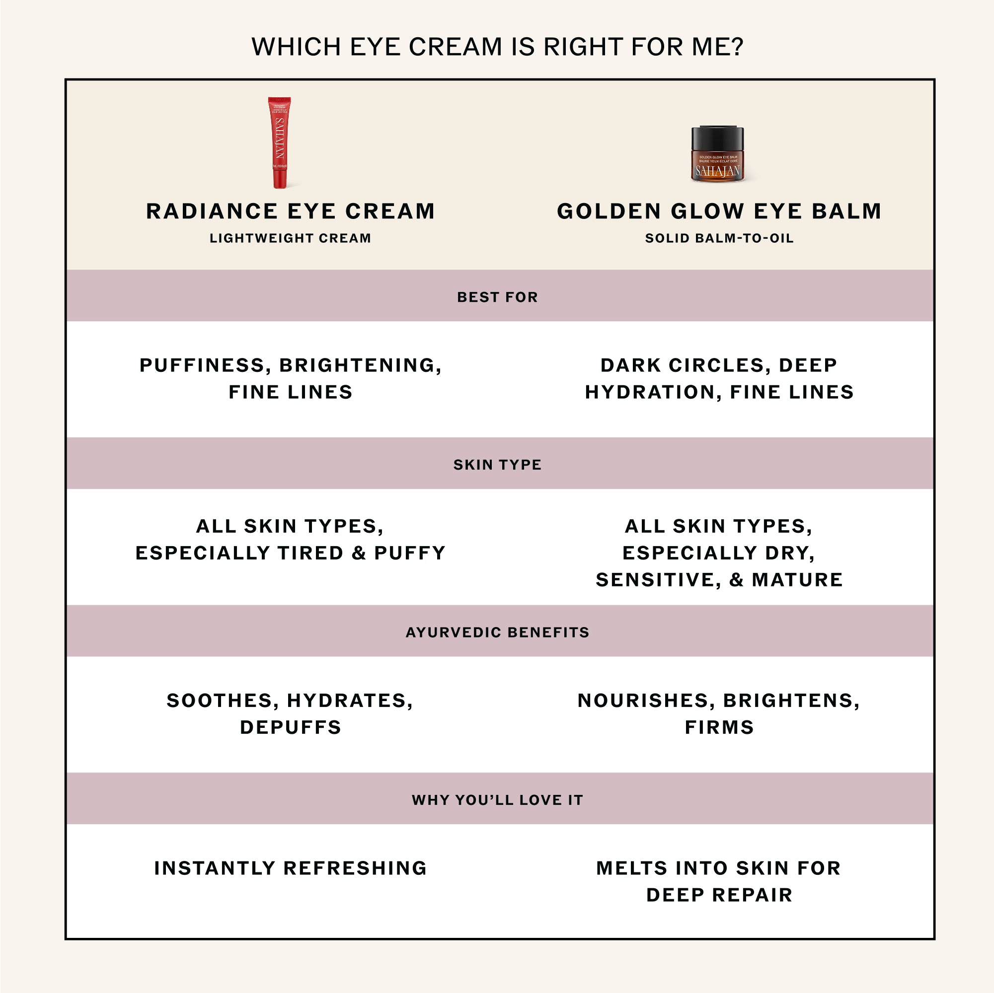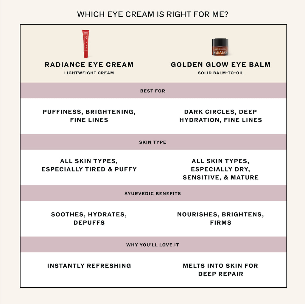 The delicate skin around the eyes is more fragile, up to 5x thinner than the rest of the skin, more prone to dryness and quicker to show the signs of fatigue, stress and environmental factors. Enter Ghee, Ayurveda’s liquid gold, rich in fatty acids and antioxidants and revered for its ability to soften dark circles and help soothe the undereyes. We have harnessed the power of ghee in this thick, masque- like balm and added eyebright and gotu kola to help visibly reduce the signs of fatigue and diminish the dark circles and rose oil to help improve skin elasticity and firmness.