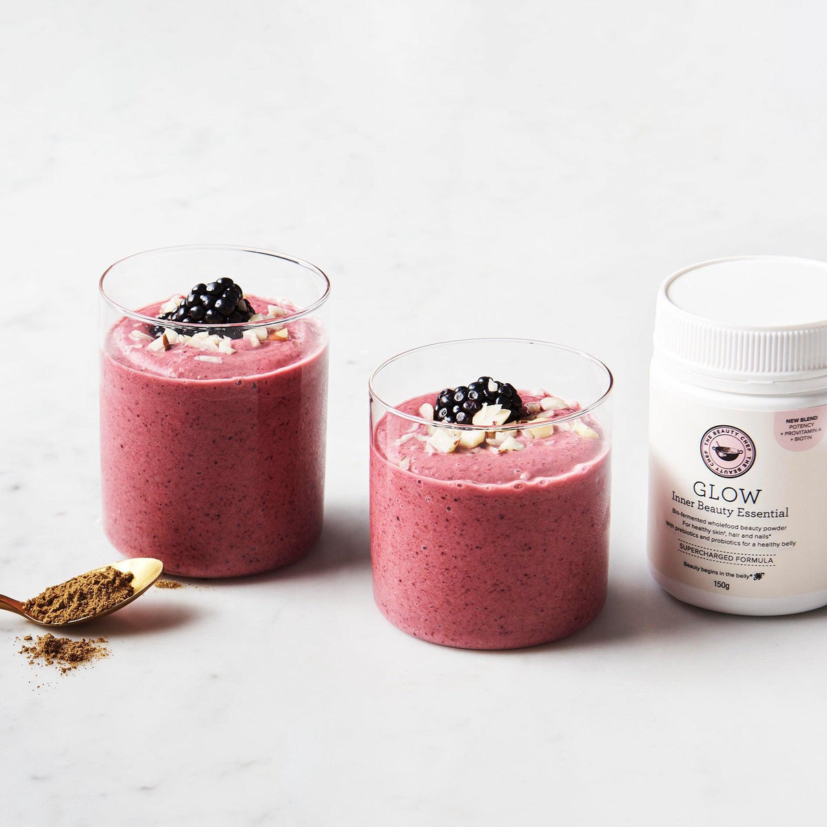 After clearing her skin with the help of a naturopath, founder Carla Oates made the connection: “Beauty begins in the belly.” Combining her passion, knowledge, and love of probiotics, Carla created the cult favorite GLOW Inner Beauty Powder. The Beauty Chef’s line followed soon after, featuring a range of inner and outer beauty products designed to promote radiance from the inside out.